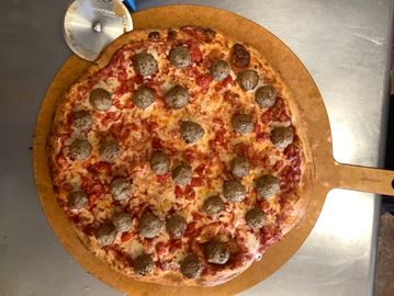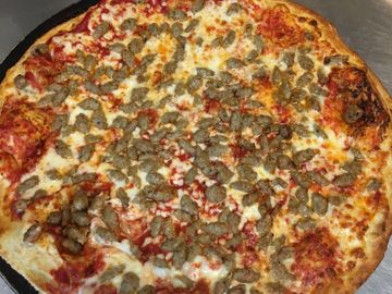 Pizza sauce, mozzarella, mild or spicy Italian sausage