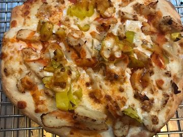 Mozzarella, chicken, pepperoncini, Buffalo sauce & ranch